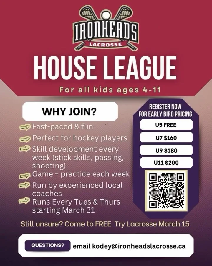 Entering an exciting new chapter in 2026, the Ironheads build on a strong foundation of lacrosse in the region with a renewed identity and continued commitment to excellence. Our focus remains rooted in skill development, teamwork, sportsmanship, and community pride β creating an inclusive program where players develop resilience, form lasting friendships, and grow a lifelong love for Canadaβs National Summer Sport.